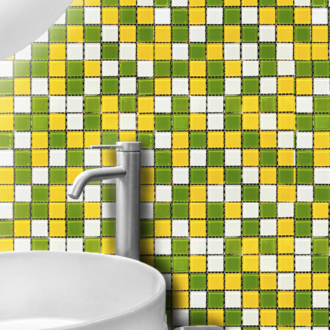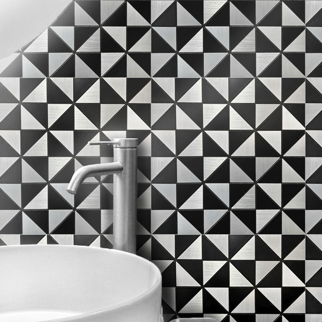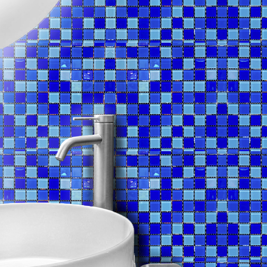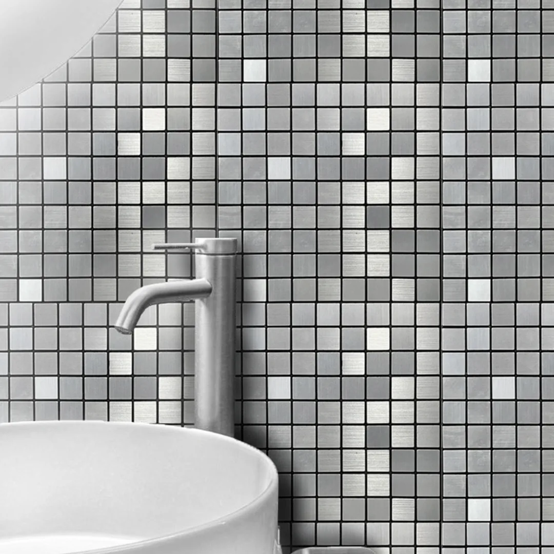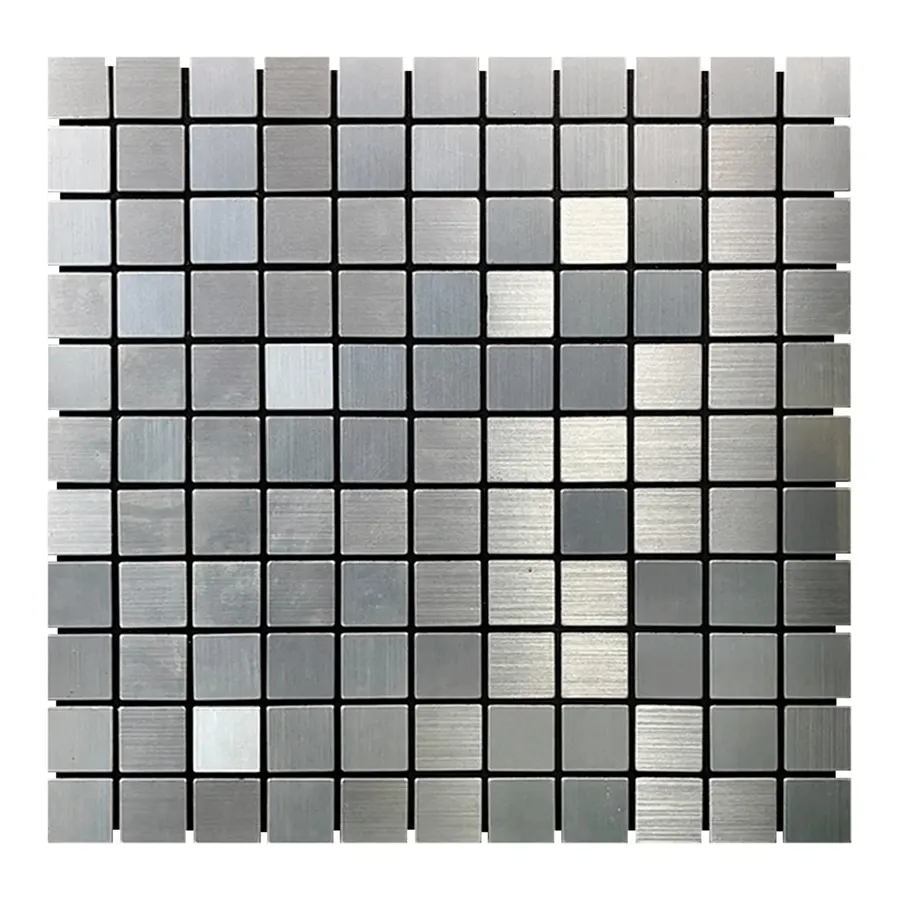 Mosaico de pequeños azulejos cuadrados formando un patrón geométrico que da un efecto moderno y refrescante.