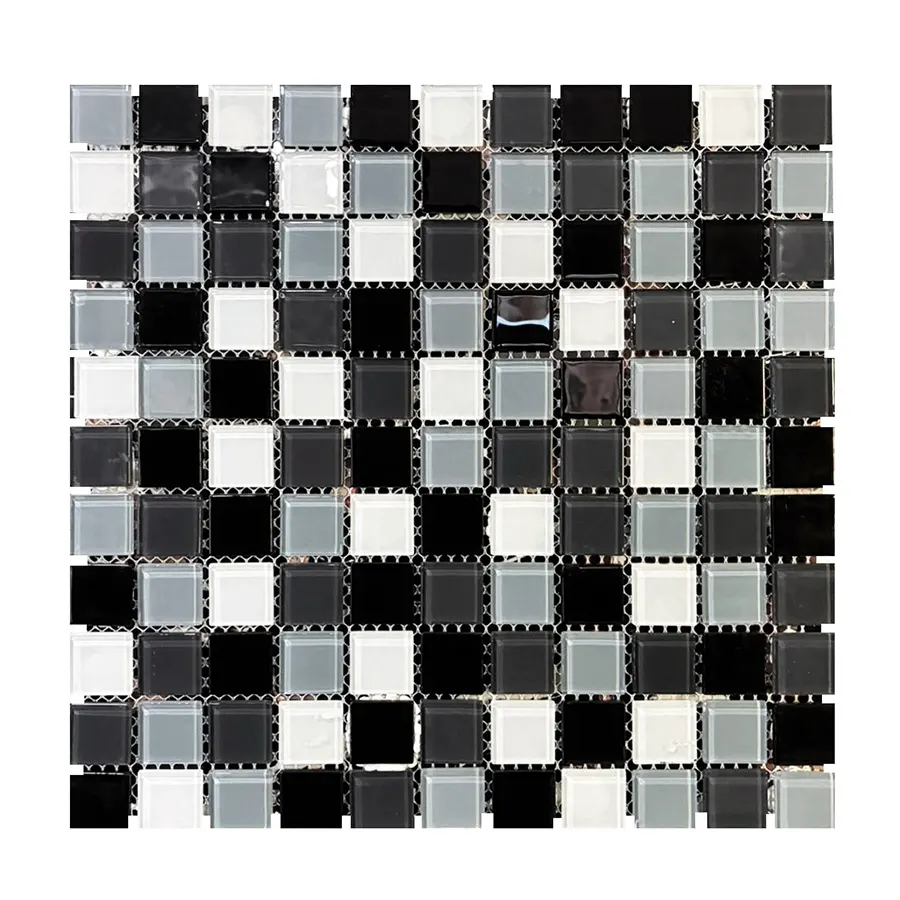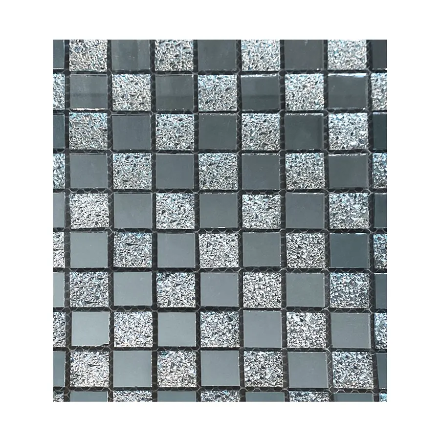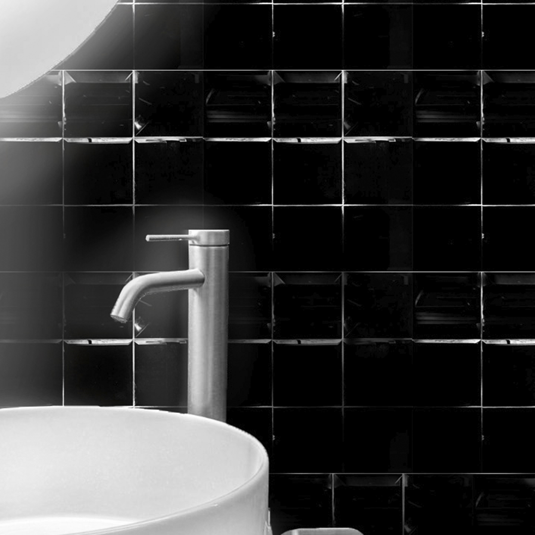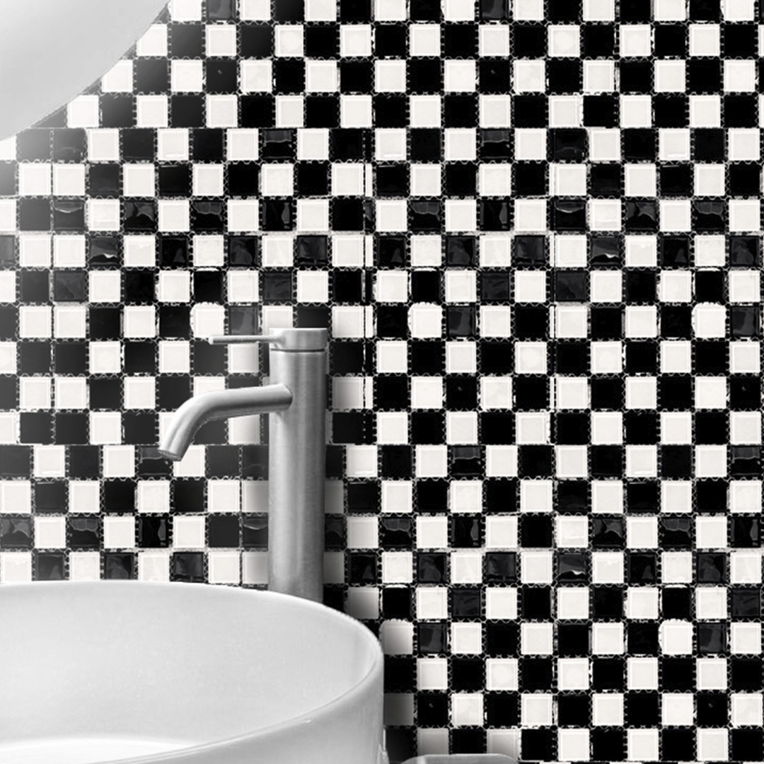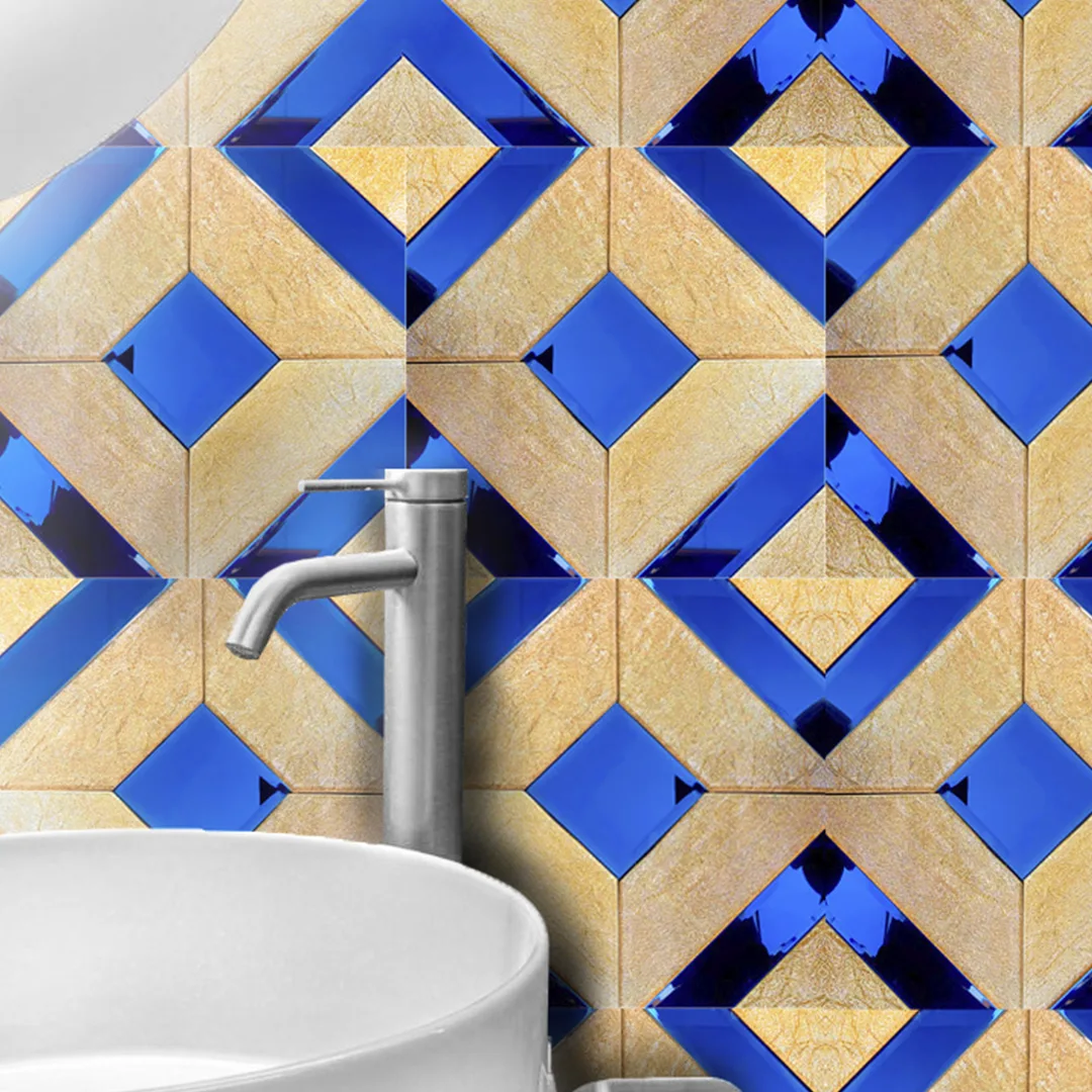 Mosaico de pequeños azulejos cuadrados formando un patrón geométrico que da un efecto moderno y refrescante.
