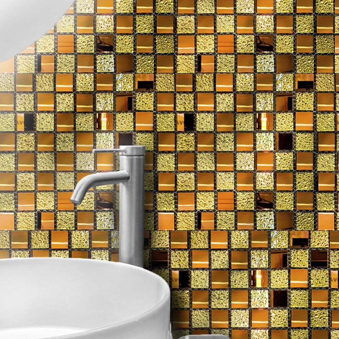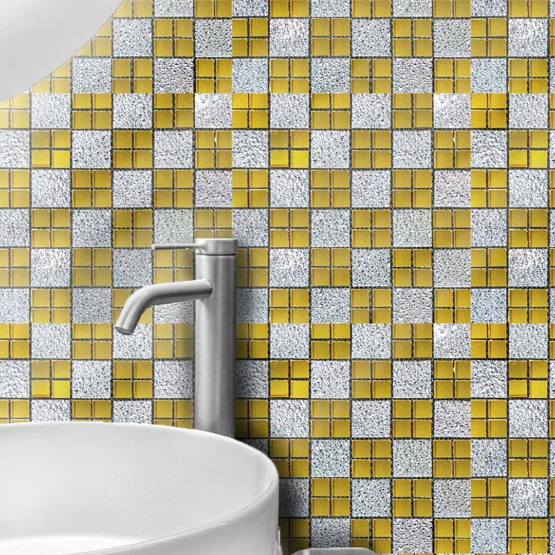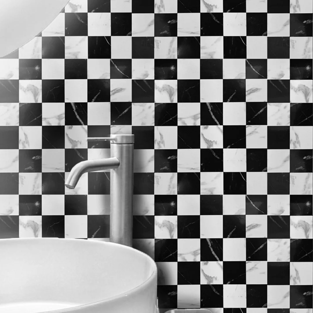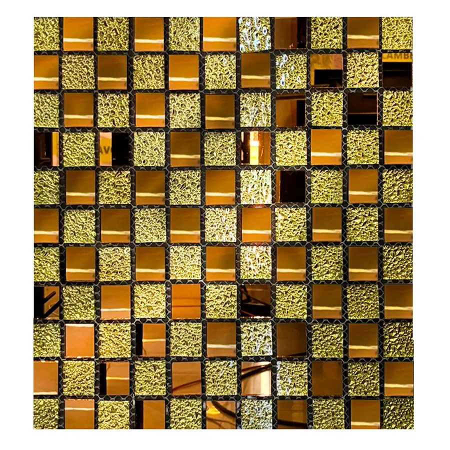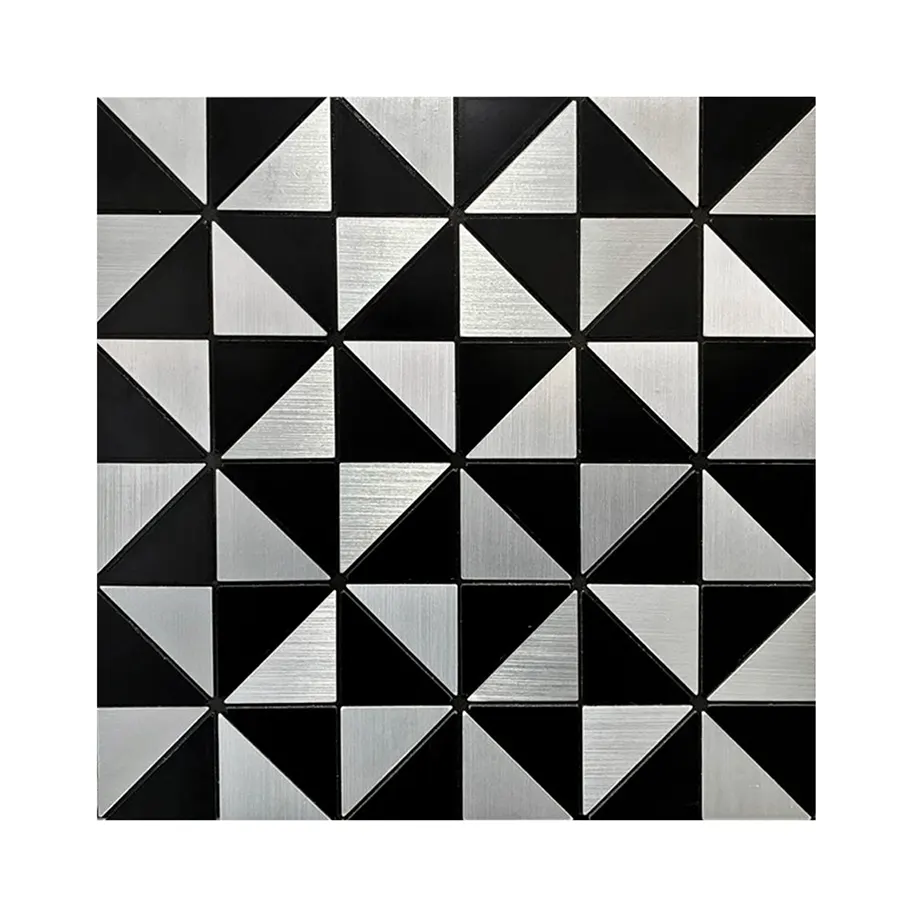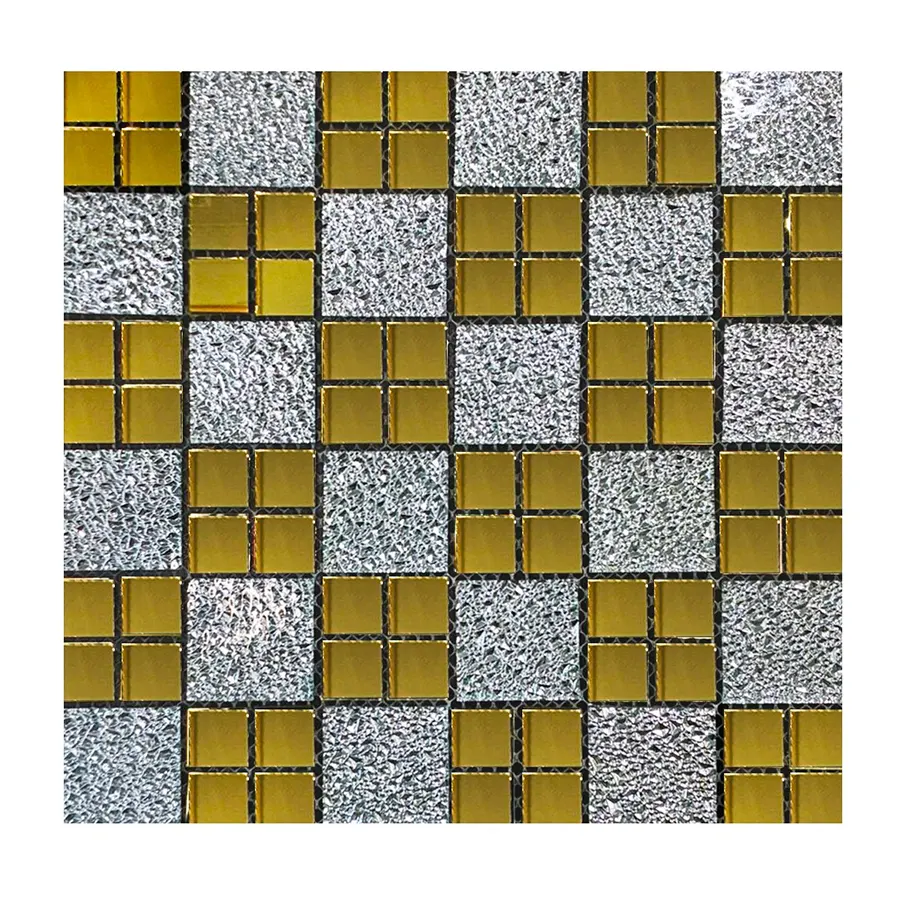Mosaico de pequeños azulejos cuadrados formando un patrón geométrico que da un efecto moderno y refrescante.