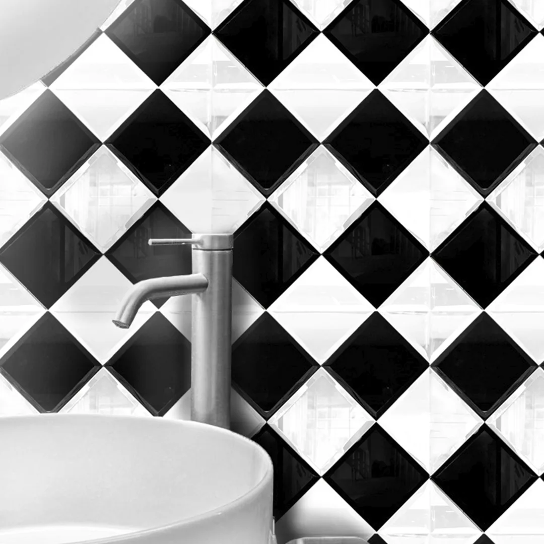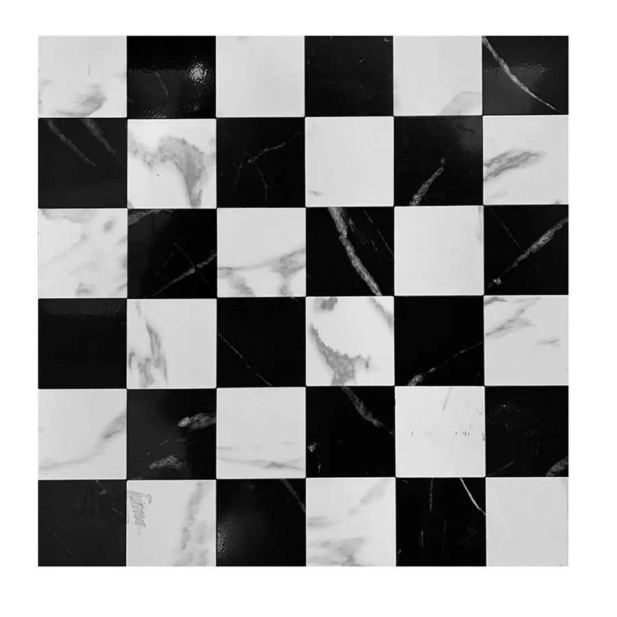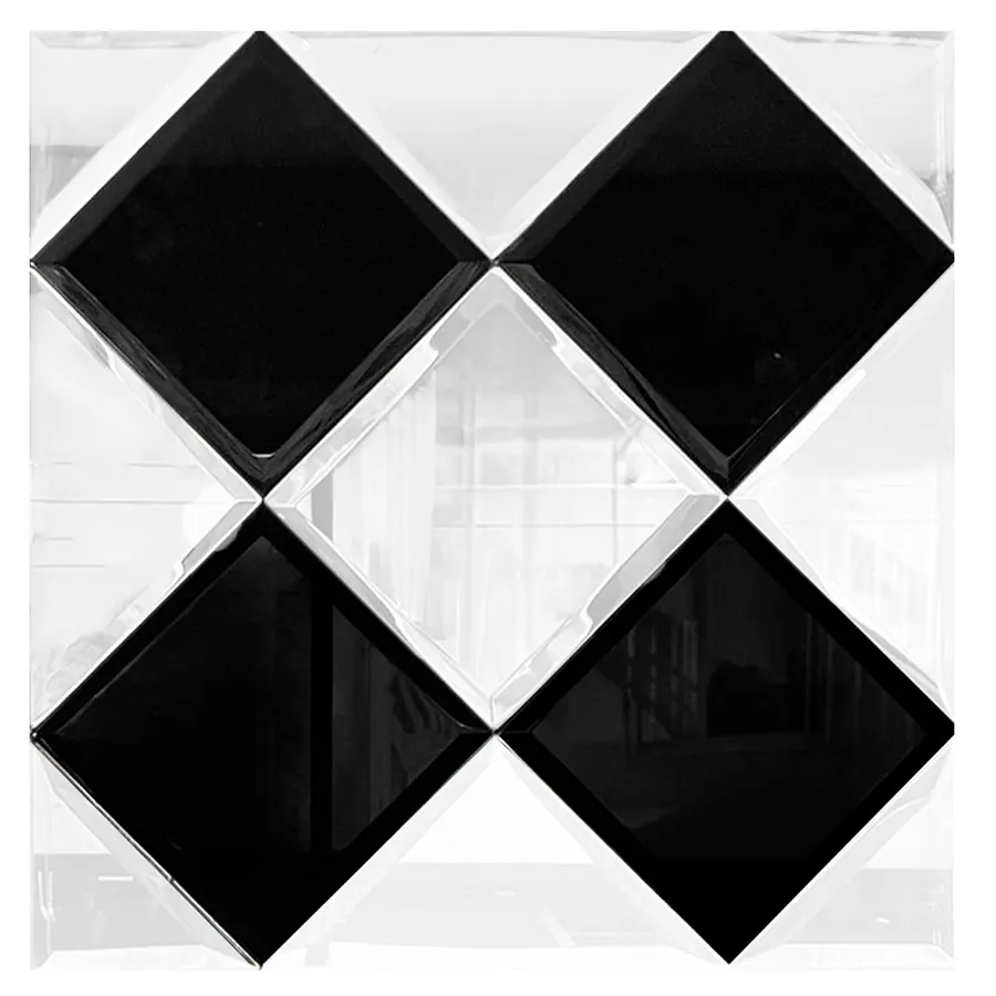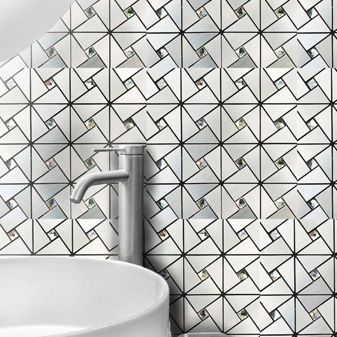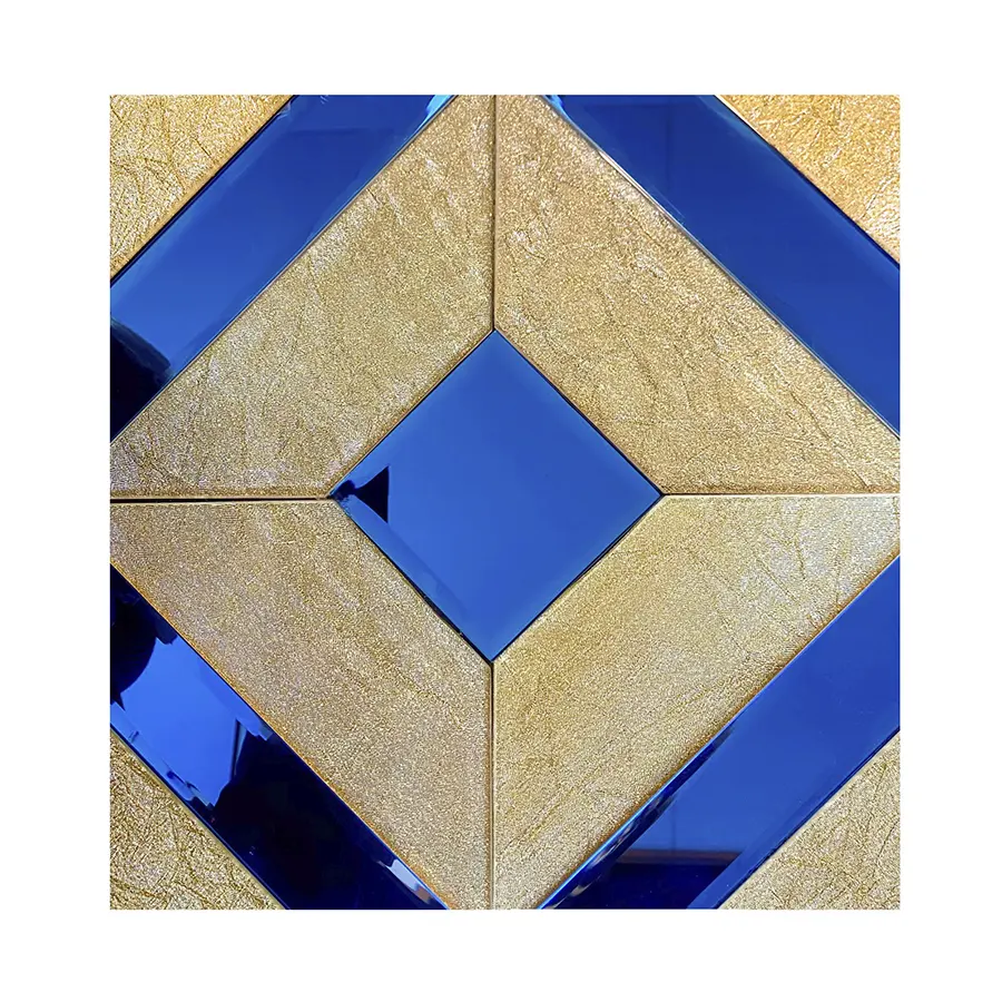 Mosaico de pequeños azulejos cuadrados formando un patrón geométrico que da un efecto moderno y refrescante.