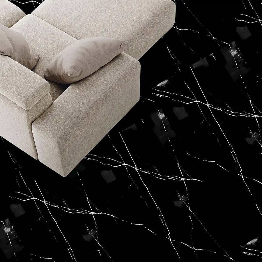 Porcelanato negro con vetas blancas, elegante y moderno perfecto para espacios sofisticados.