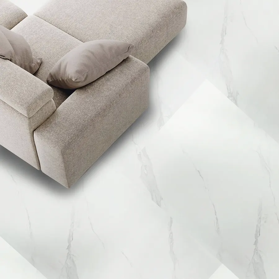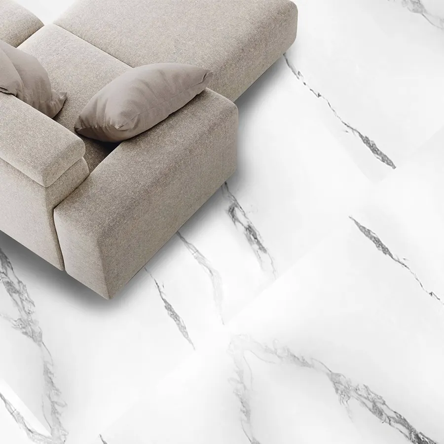 Porcelanato de tono blanco con delicadas vetas grises ofrece un diseño elegante y moderno.