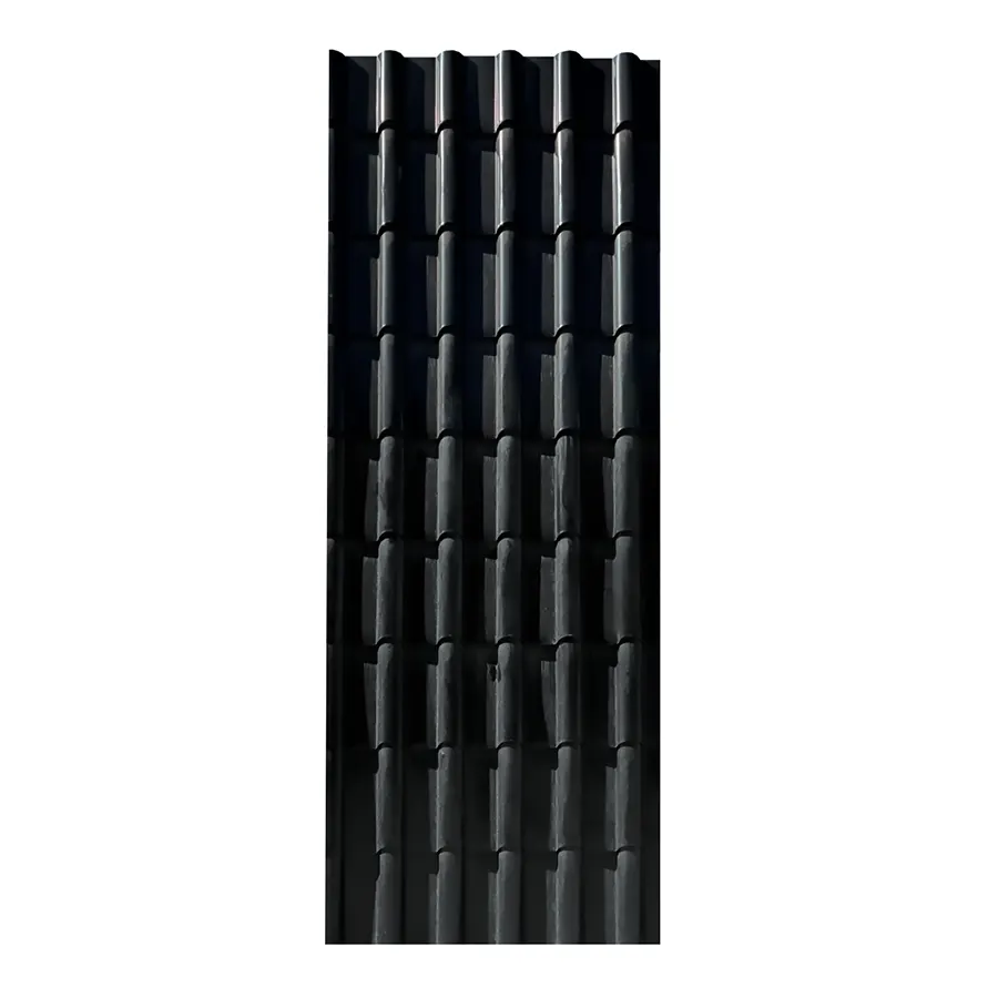 Teja colonial de zinc negra, acanalada y con acabado moderno ideal para un techo elegante y resistente.