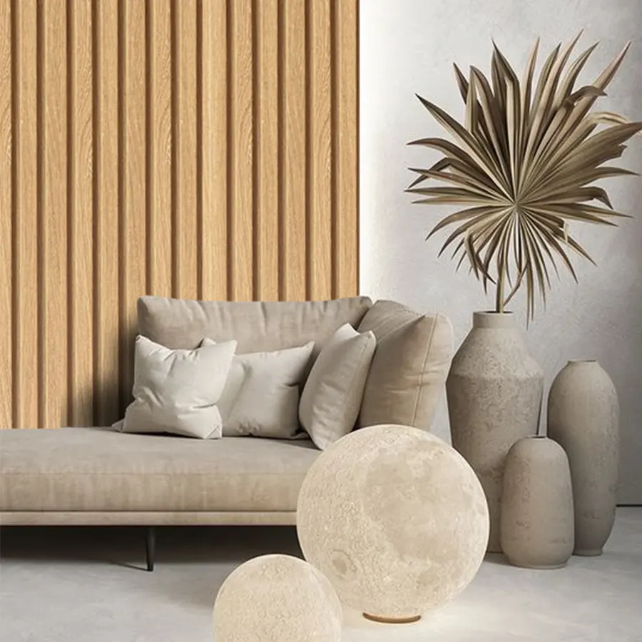 Wall Panel D de tono roble claro y vetas, aporta modernidad y elegancia a los espacios interiores.