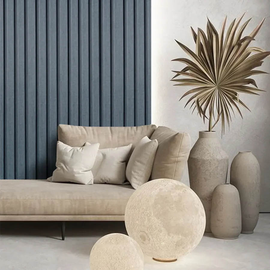 Wall Panel D de acabado gris claro con apareciencia de textura aporta modernidad y elegancia a los espacios interiores.